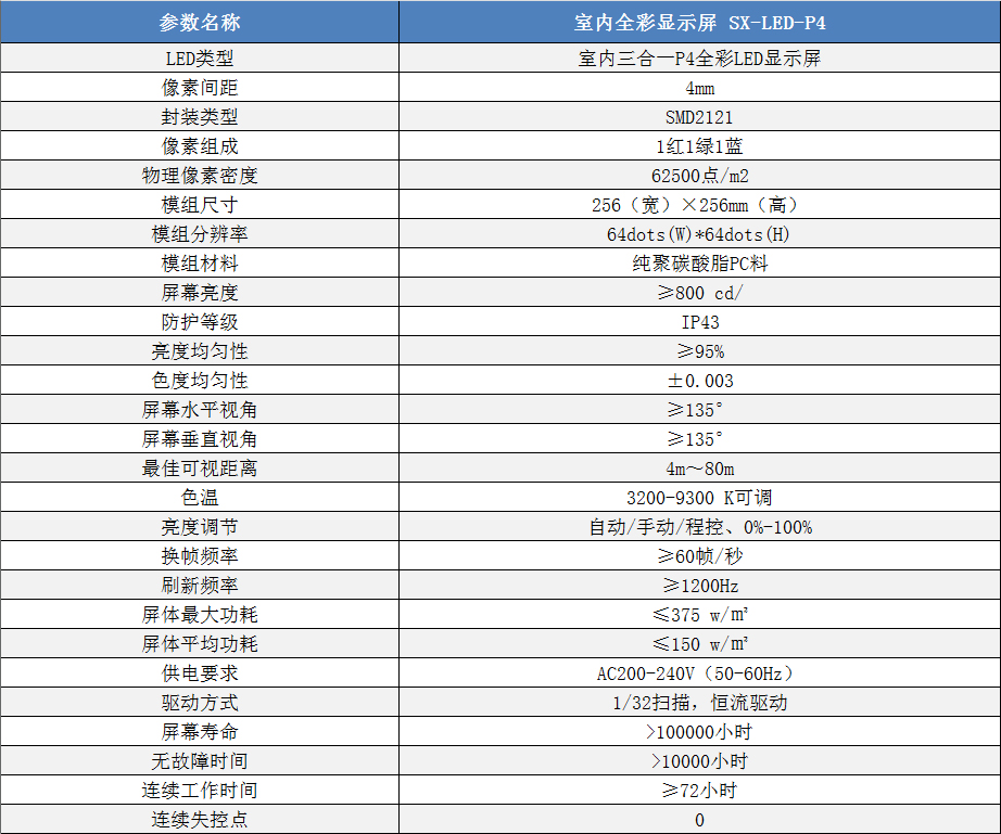 P4室內(nèi)小間距高清全彩LED顯示屏技術參數(shù):