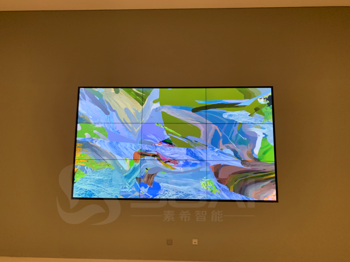 經過上海素希智能科技有限公司項目組實地看完客戶現場后,根據客戶需求以及現場實際情況和客戶預算等情況,最后該項目采用的是素希三星55寸1.7mm拼縫3*3拼接屏,該項目應用的是液壓前維護支架(方便后期維護),該項目主要是宣傳畫廊的藝術品。