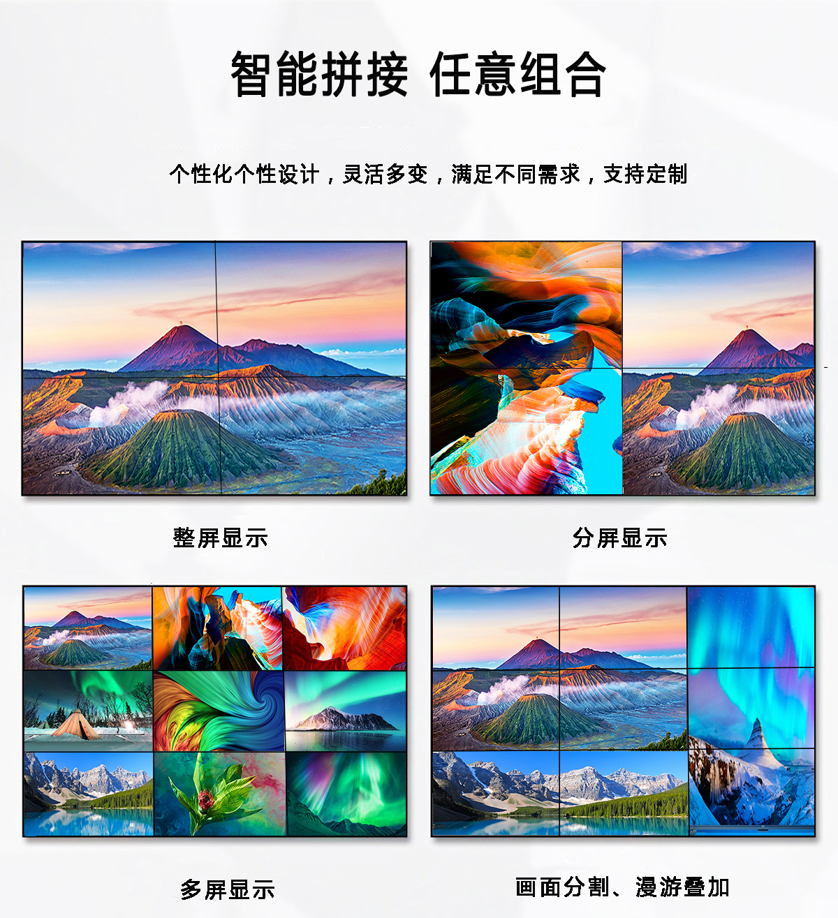 ③支持橫屏、豎屏、弧形、菱形等多種拼接顯示方式
